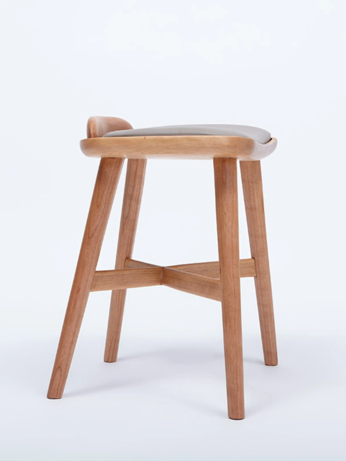 Shan Yin Creations Nordic Style Black Walnut & Cherry Solid Wood Vanity Stool - Versatile Dressing and Shoe Bench with Genuine Leather Upholstery
