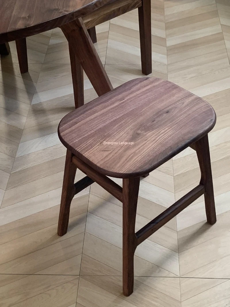 Nordic Minimalist Solid Black Walnut Vanity Stool for Home - Chic and Elegant Makeup Bench for Bedroom and Balcony, Perfect for Modern Living Spaces