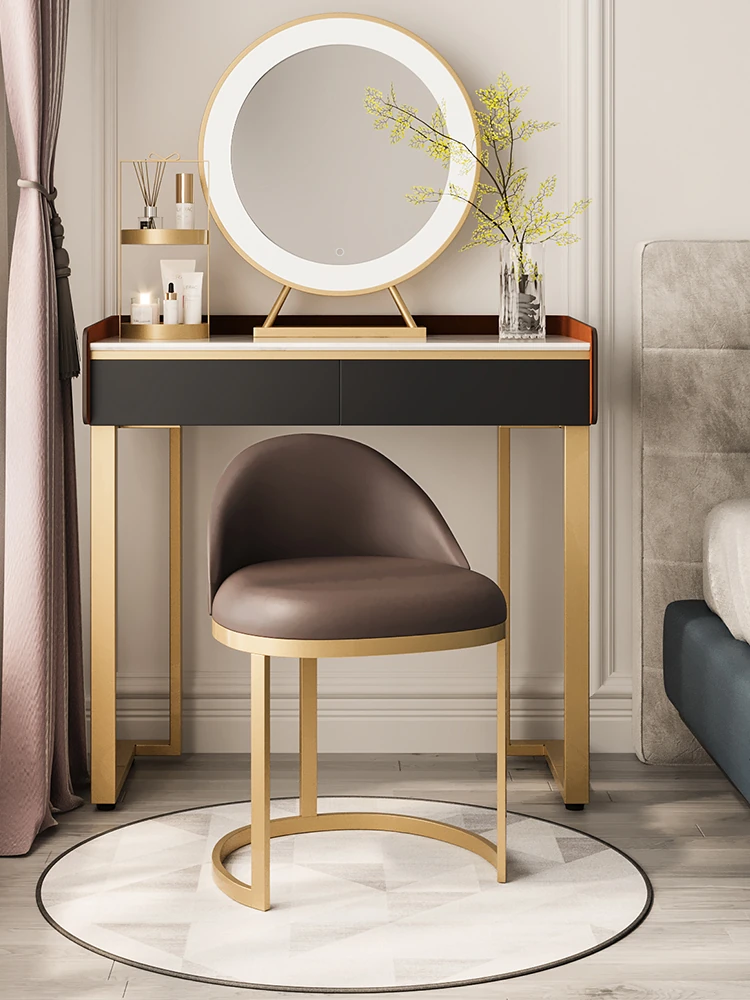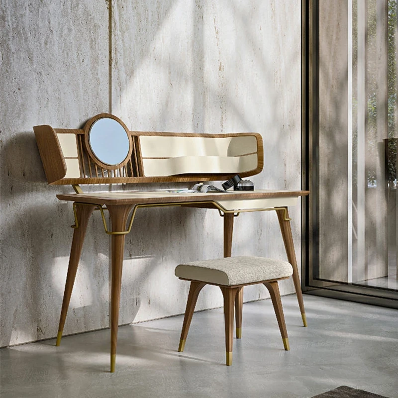 Minimalist Italian Designer Makeup Vanity Storage Cabinet - Sleek All-in-One Makeup Desk with Solid Wood Stool for Modern Bedrooms