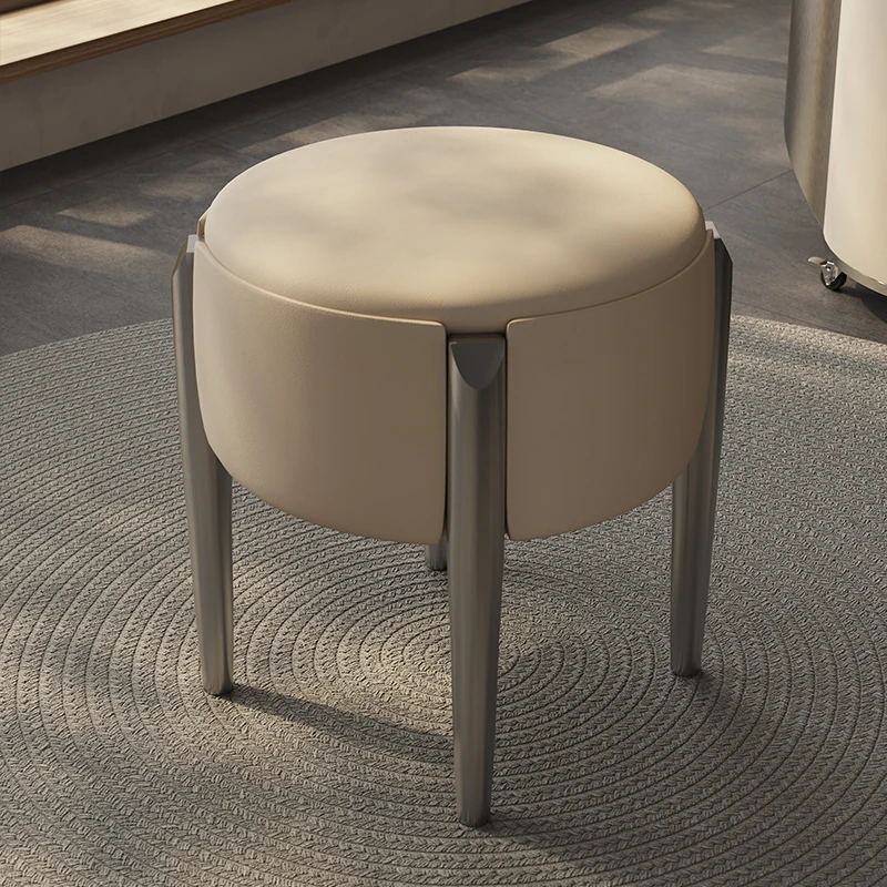 Italian Minimalist Luxury Round Stool - Stylish Home Sofa Footstool for Makeup Vanity, Soft Upholstered Design, Perfect for Changing Shoes, Chic and Functional