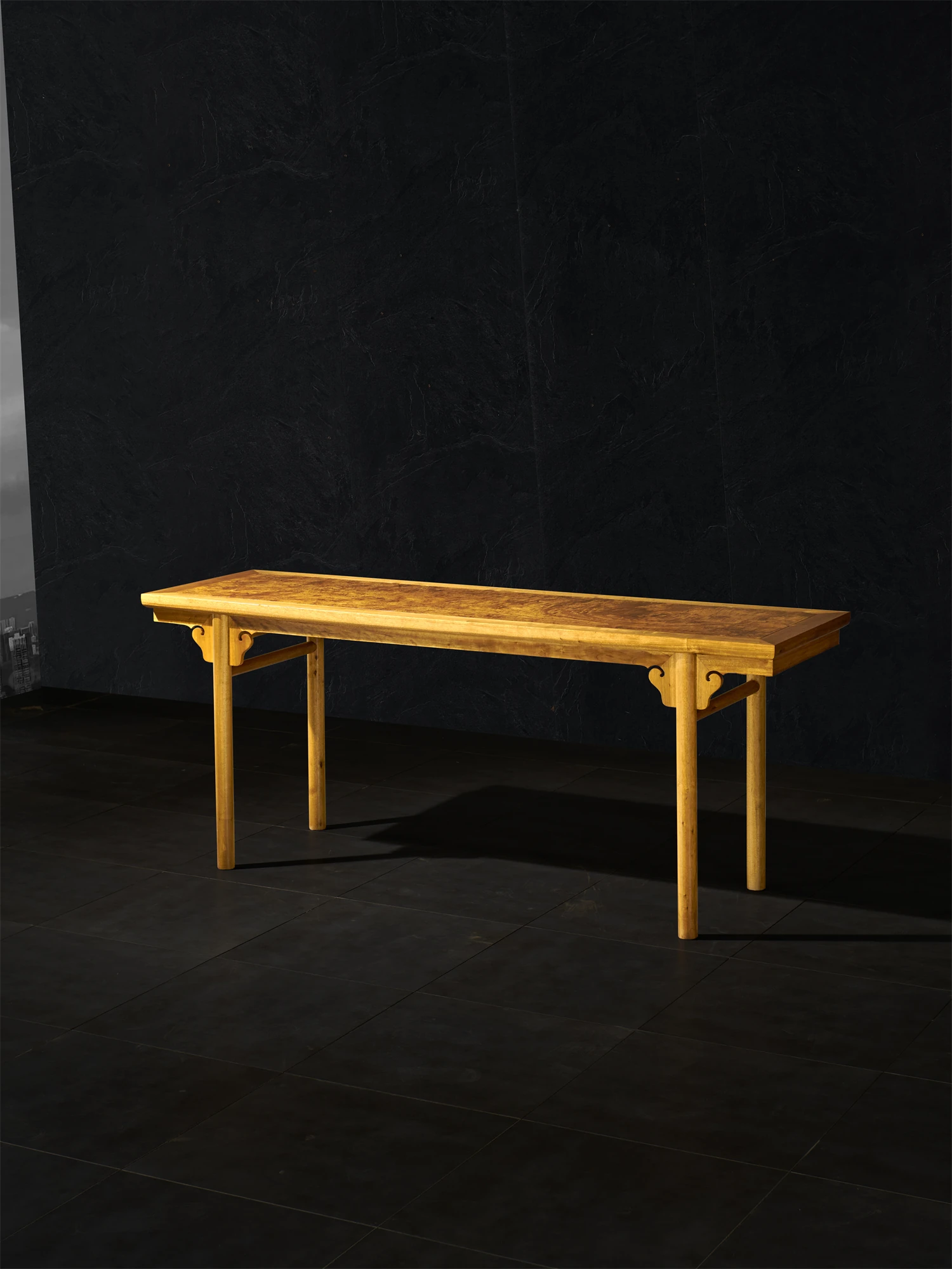 Classic Ming-Style Cloud-Head Tea Table and Painting Stand - Solid North American Black Walnut & Golden Silk Nanmu Wood with Traditional Mortise and Tenon Joinery