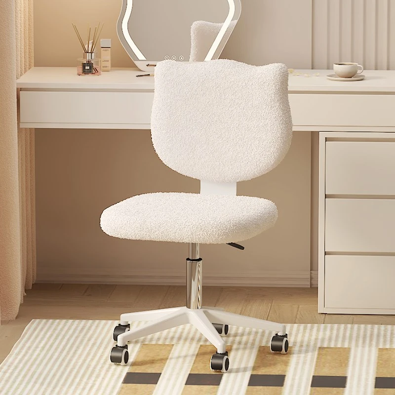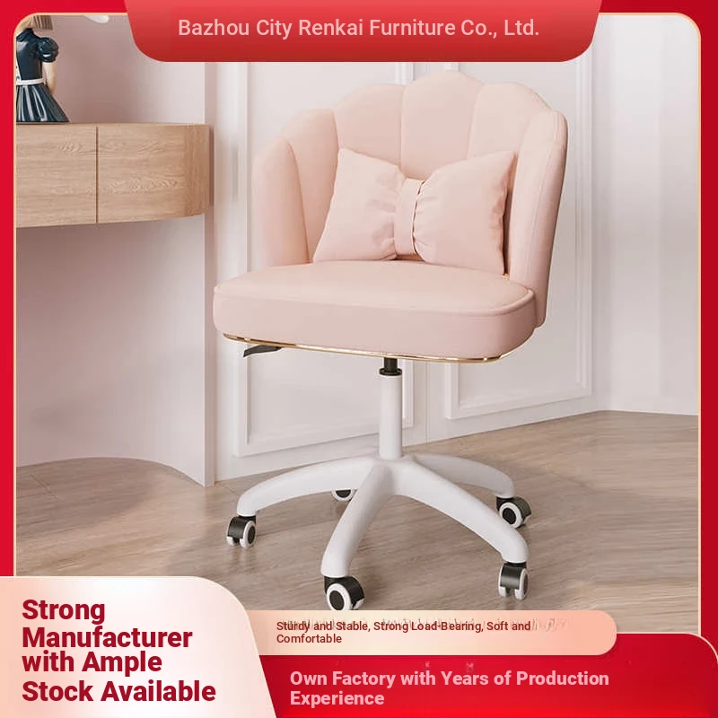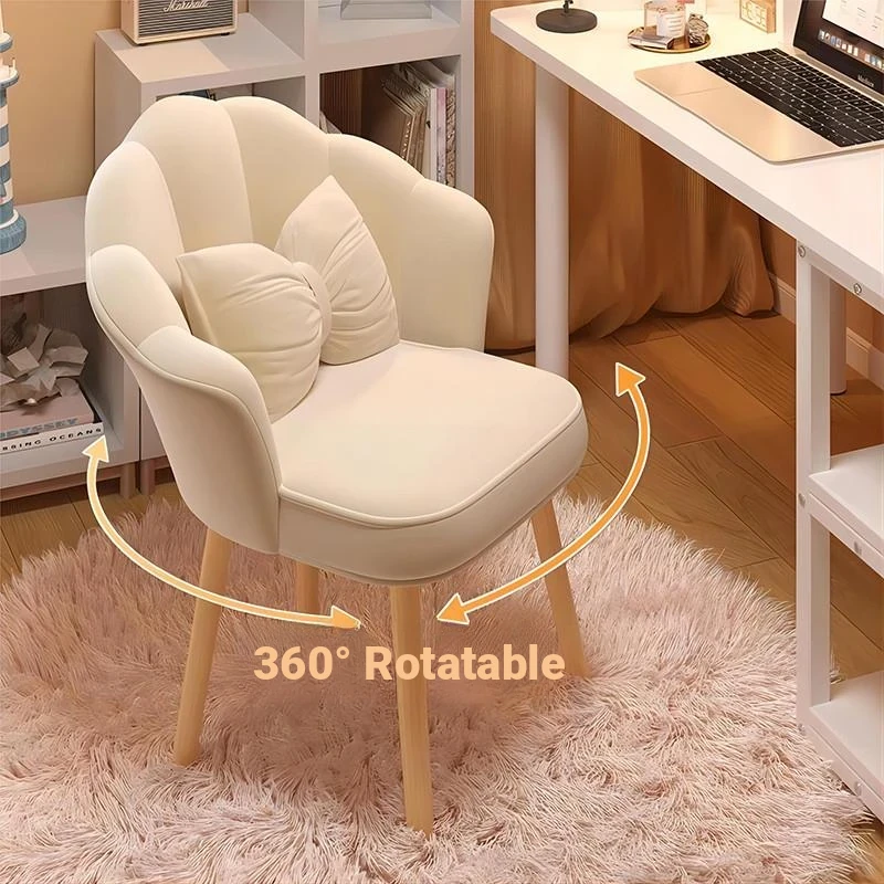 Petal Roller Computer Chair with Wheels - Plush and Comfortable Makeup Chair for Girls' Bedroom and Dormitory