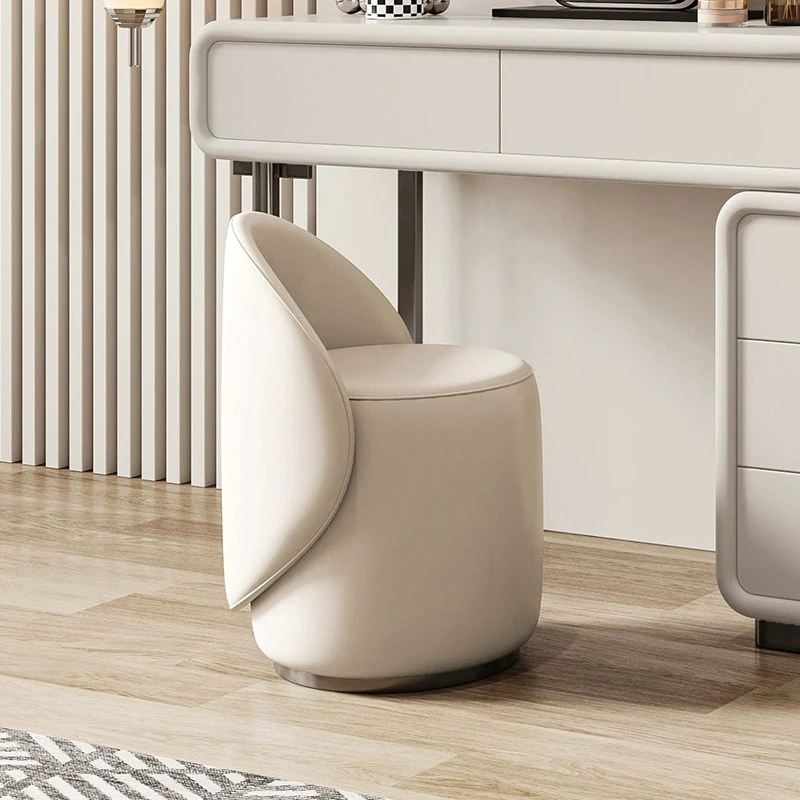 Modern Minimalist Makeup Stool for Bedroom - Compact Vanity Chair with Italian Luxury Design, Perfect for Nail Art and Elegant Beauty Routines.