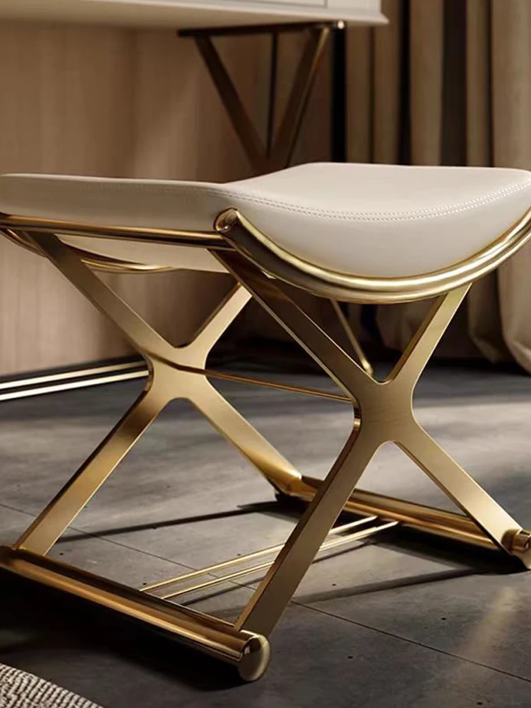 2025 New Luxury Genuine Leather Makeup Chair – Stylish Home High-End Stainless Steel Shoe Stool, Perfect for Office Tea Breaks & Guest Seating