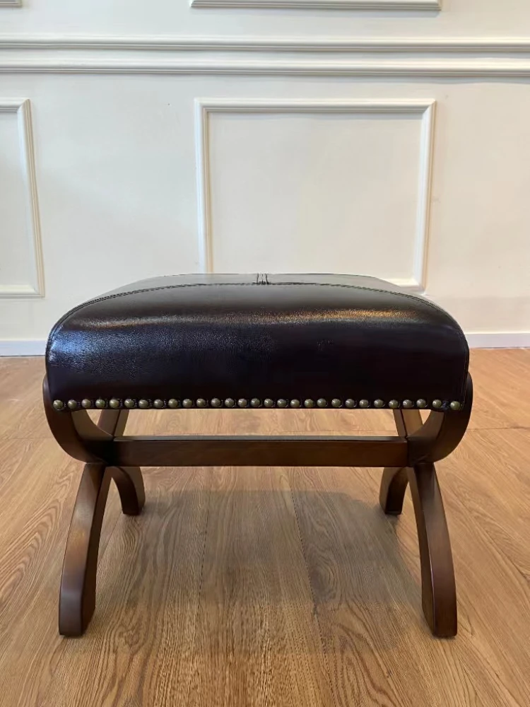 American-Style Solid Wood Shoe Bench with Genuine Leather – Perfect Entryway Furniture for Easy Shoe Changing!