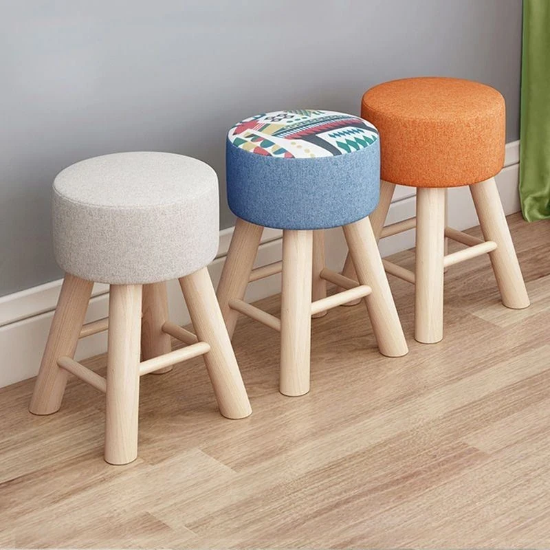 Haoju D40 Solid Wood Upholstered Stool - Stylish and Comfortable Round Ottoman for Business Meetings, Reception Areas, and Relaxation Spaces. Perfect for Casual Seating and Easy to Move!