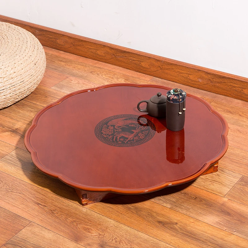 Korean Folding Table - Versatile Tatami Dining Table, Ideal for Study, Round Design, Space-Saving Wooden Table for Home and Office Use, Perfect for Meals and Gatherings