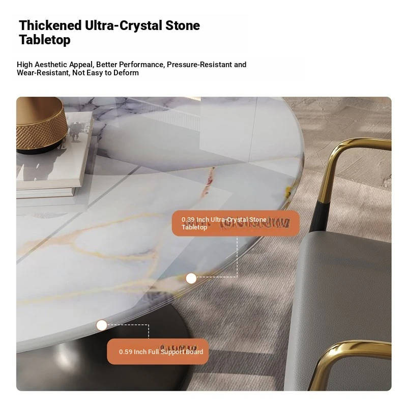Elegant Light Luxury Ultra-Crystal Round Table Set for Meetings and Reception - Premium Natural Stone Coffee and Dining Table Combination, Perfect for Stylish Gatherings