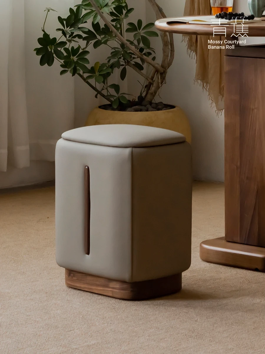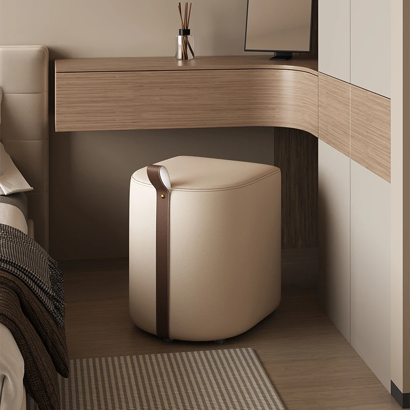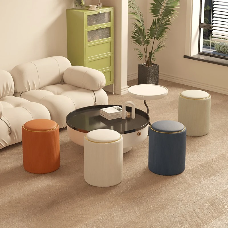Nordic Chic Makeup Stool - Modern Minimalist Round Footstool for Bedroom & Living Room, Versatile Light Luxury Design, Perfect for Shoe Changing and Makeup Vanity
