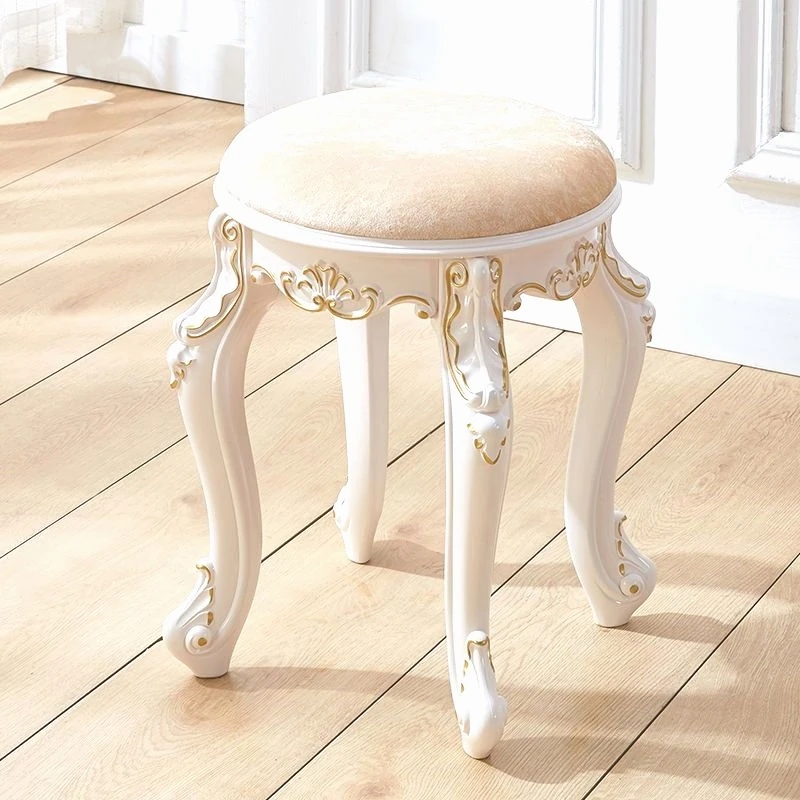 Elegant European and American Style Makeup Vanity Stool - Soft Padded Square Stool for Home Use, Ideal for Princess Bedrooms, Nail Art, and Guzheng Playing. Perfect Blend of Comfort and Style!