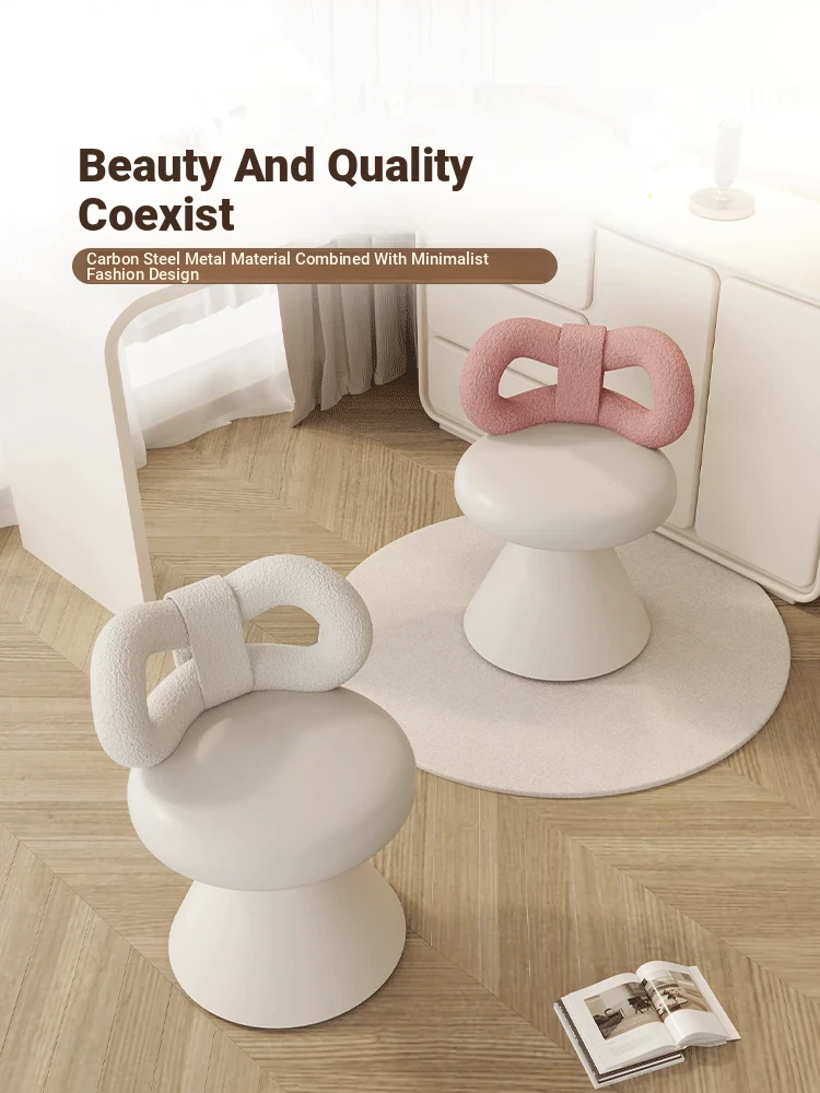 Chic Luxury Makeup Chair for Bedroom – Stylish Backrest Design, Ideal for Women and Designers, Minimalist Rotating Vanity Stool, Perfect for Nail Art and Beauty Routine