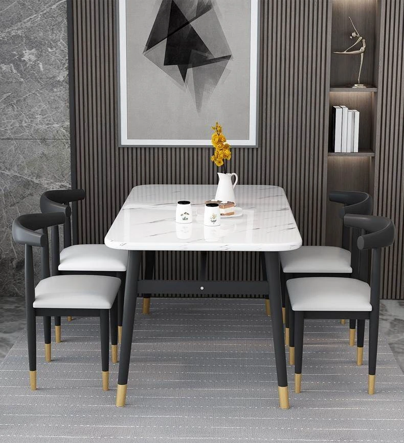 Stylish Rectangular Dining Table Set for Small Spaces - Includes One Table and Four Chairs, Perfect for Home Dining Room, Elegant Faux Marble Design