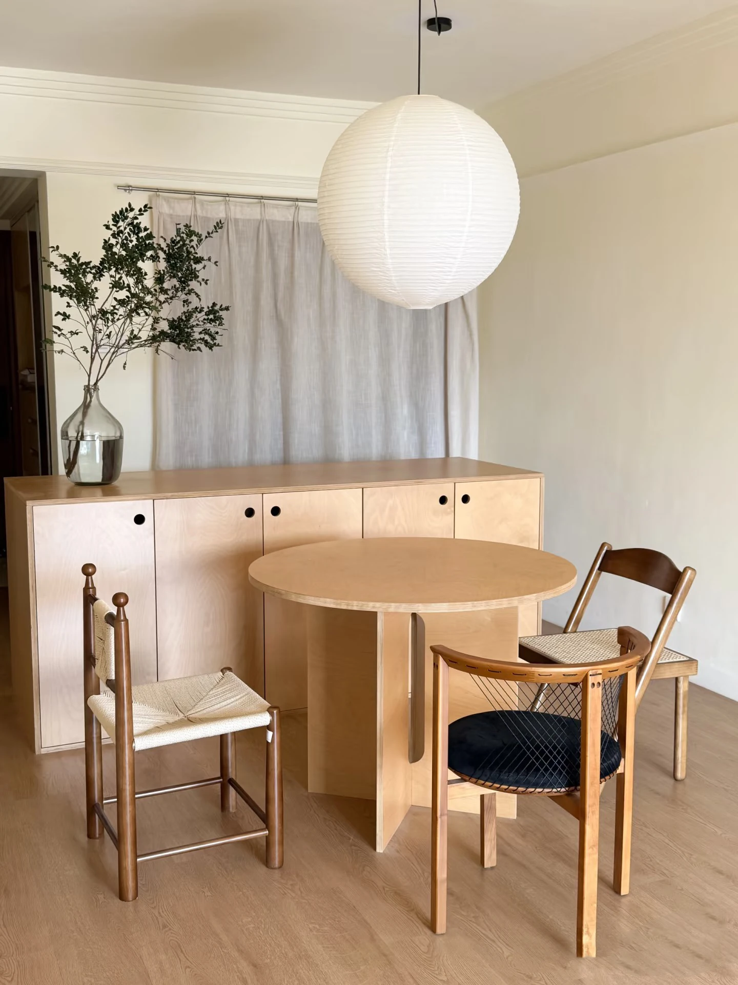 Nordic Minimalist Folding Flip-Top Solid Wood Dining Table with Storage Side Cabinet and Chairs - Perfect for Small Spaces!