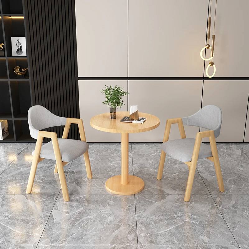 Minimalist Round Reception Table for Coffee and Tea Shops - Perfect for Commercial Waiting Areas, Featuring a Natural Wood Design with Matching Chairs for Elegant Discussions and Meetings.