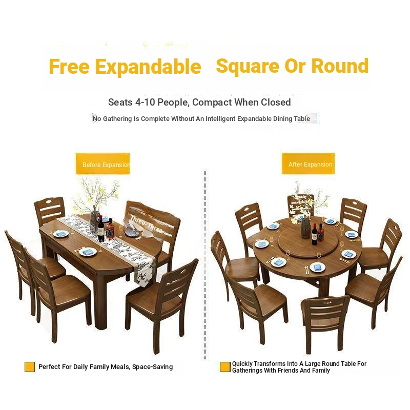 "Free Shipping to Hong Kong: Versatile Solid Wood Dining Table and Chair Set with Rotating Turntable - Perfect for Small Spaces and Home Use, Expandable for Restaurants"