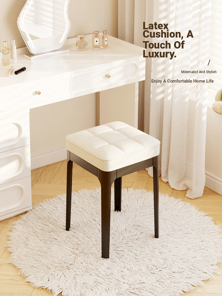 Modern Solid Wood Vanity Stool - Simple and Comfortable Makeup Chair for Bedroom, Study, and Dressing Table - Soft Cushion Design for Ultimate Relaxation