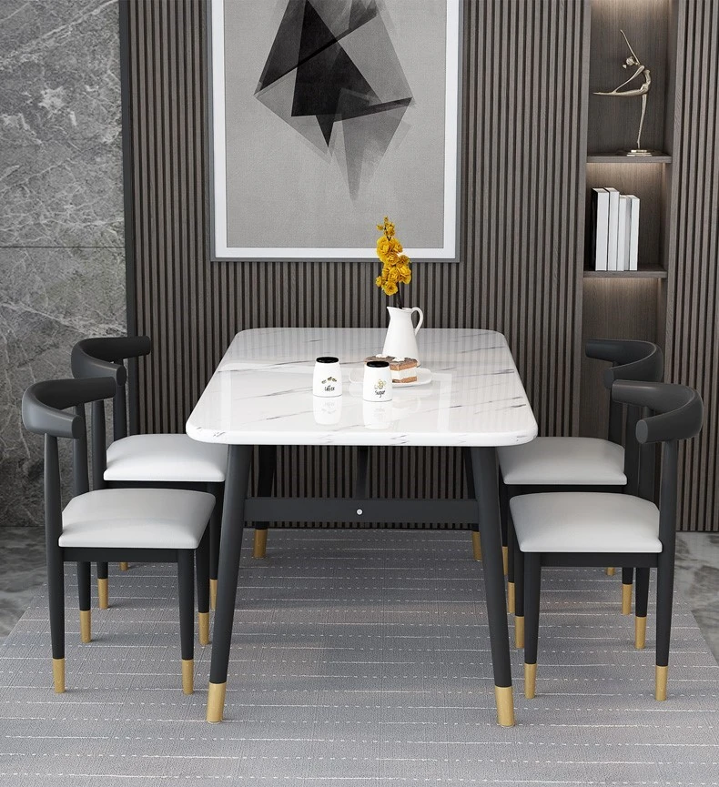 Modern Rectangular Dining Table Set for Home - Includes One Dining Table and Four Chairs, Stylish Minimalist Design, Perfect for Small Spaces, Elegant Faux Marble Finish