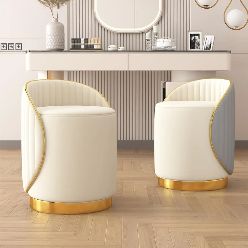 クリーミーな風合いのメイクアップスツール|おしゃれな女性のための自宅用ドレッサーチェア|高級感溢れるデザインで、美容院やネイルサロンのお客様にも最適!