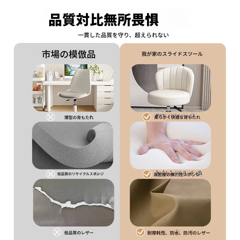 軽やかなラグジュアリー感!女性のための寝室用メイクアップスツール。小さなスペースにもぴったりな家庭用靴替えスツール。回転式のサドルスツールで、使い勝手抜群!