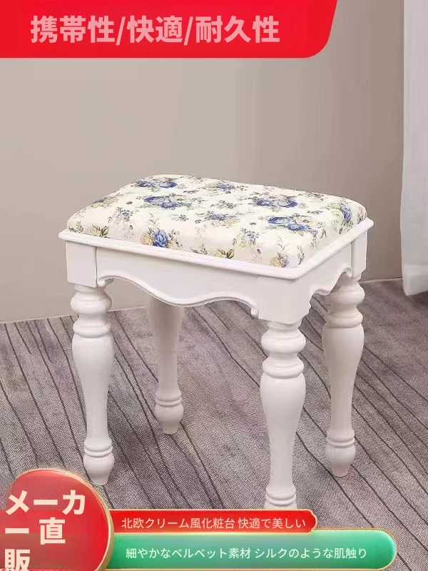エレガントなヨーロピアンスタイルの無垢材メイクアップスツール - おしゃれなドレッサー用椅子、美容ネイル用、家庭用靴脱ぎ椅子にも最適!古筝やカフェテーブルにもぴったりな多用途デザイン。