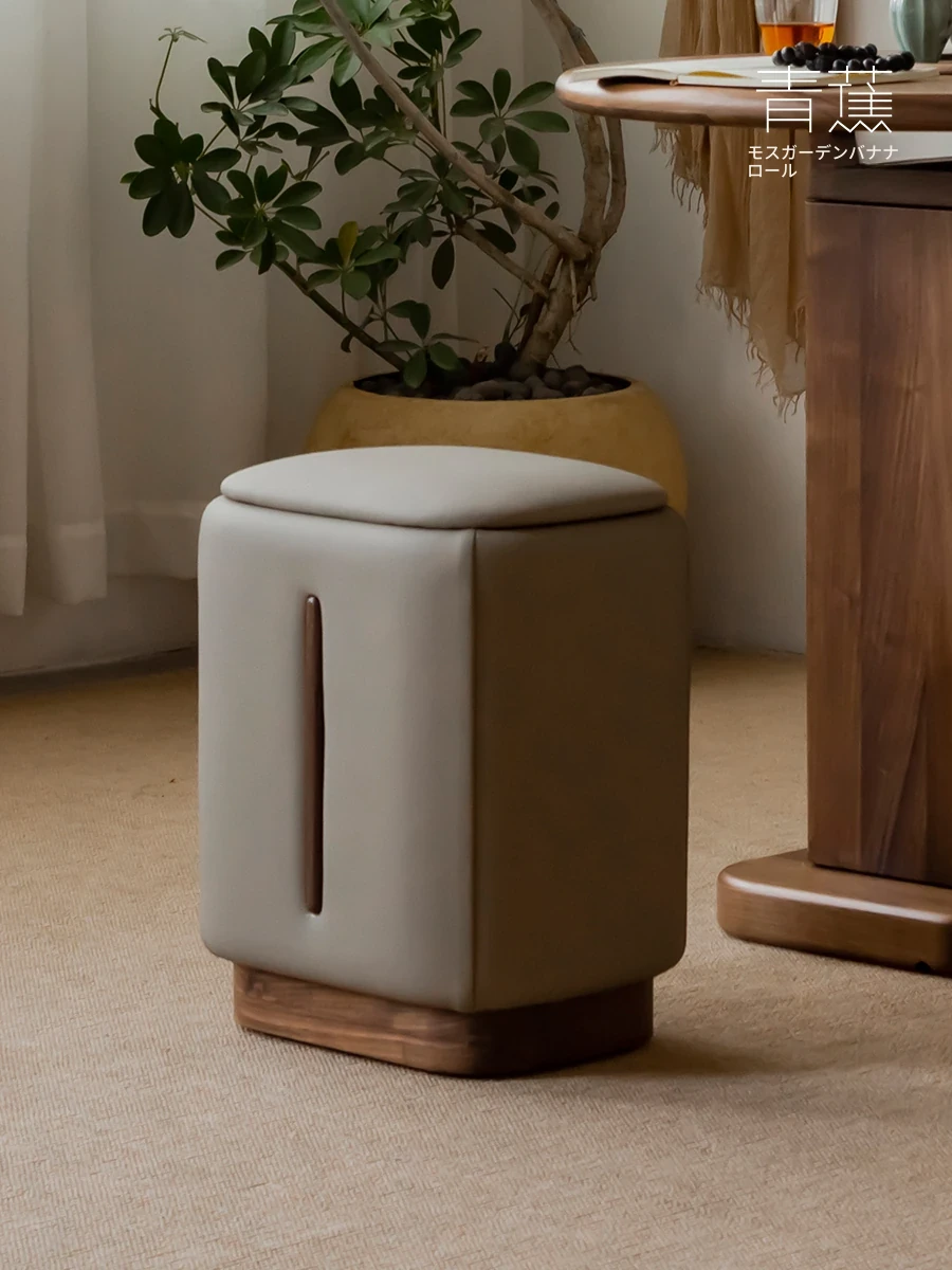 青蕉ホームの十方茶凳 - 新中式デザインのバルコニーチャーテーブルセット。高品質なレザー製のスツール、ドレッシングチェアや靴替え用のスツールとしても最適!実木製で耐久性抜群、インテリアにぴったりのアイテムです。