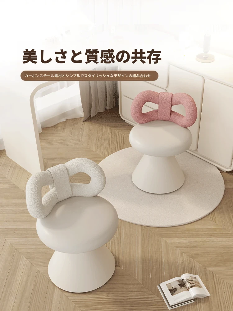 おしゃれな化粧台椅子|女子のための北欧風軽奢感化粧椅子|可愛い小型スツール|お部屋にぴったりの高級感溢れるデザインで、毎日のメイクアップを楽しく!
