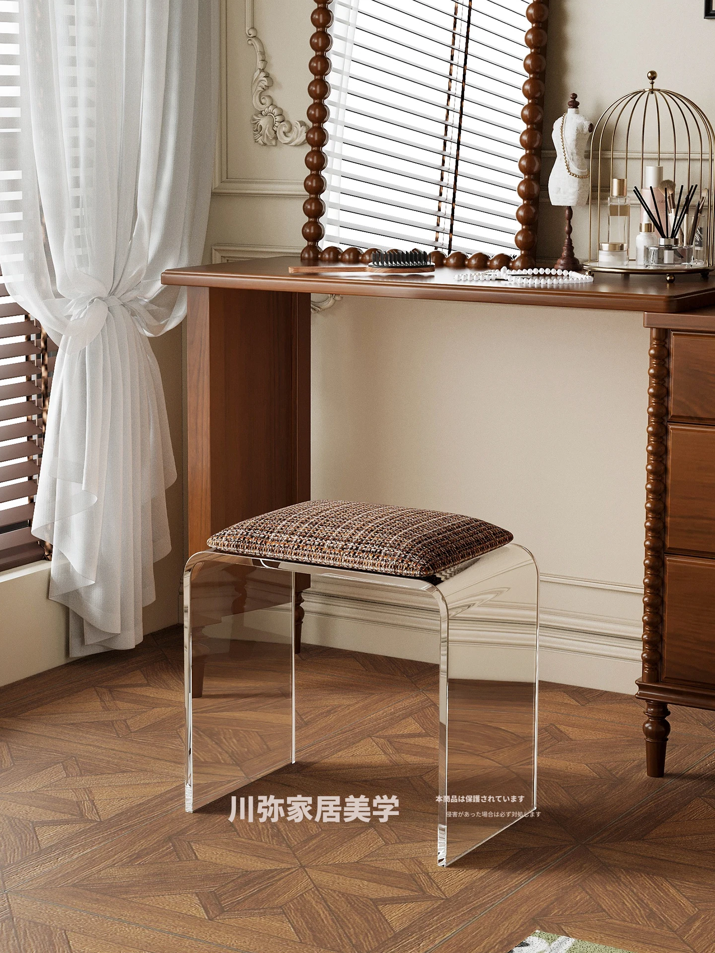 ヨーロッパ・アメリカンスタイルの化粧台用スツール!柔らかいクッション付きの小さなスクエアスツールは、可愛いプリンセスルームやネイルサロンにも最適。あなたのドレッサーを華やかに彩ります!