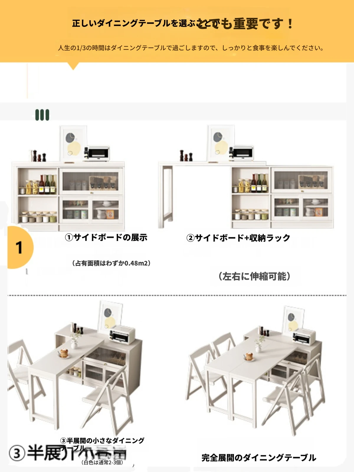 北欧スタイルのシンプルな折りたたみ式多機能ダイニングテーブル&サイドキャビネット一体型収納チェア - 小さなスペースにもぴったり!おしゃれで実用的なデザインで、あなたのお部屋をもっと素敵に。