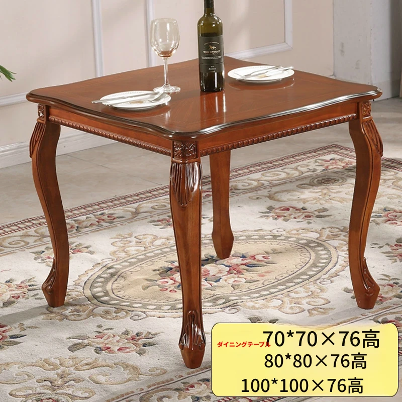 ヨーロピアンスタイルの無垢材ダイニングテーブルセット|小型住宅に最適!正方形・4人用、長方形・6人用の選べるサイズで、あなたの食卓に華やかさをプラス!